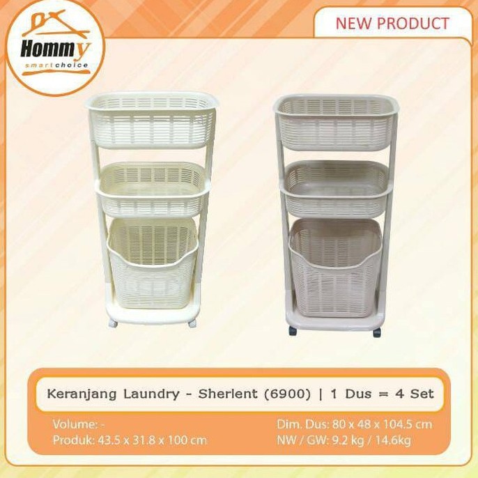 BEST SELLER!! SELALU REPEAT ORDER!!!!!Hommy Rak Keranjang Pakaian / Basket Laundry Baju Cucian Susun 3Rak keranjang Pakaian ini dapat digunakan sebagai tempat penyimpanan pakaian kotor, maupun tempat storage barang barang anda seperti Ditergen, shampoo, sabun, handuk bersih, DllRak ini dapat diletakan di dalam kamar mandi, maupun di area cuci anda.Kelebihan Dan kegunaan:- Barang 100% Original, Jika Bukan original kami ganti 3x lipat- Terdapat Roda dibagian bawahnya sehingga mudah digeser- Keranjang Bawah dapat dilepas- Terdapat 2 tingkat keranjang yang dapat digunakan untuk barang barang anda- Mudah dibersihkan- Plastik Tebal kualitas export- Anti jamur, Anti Karat, Anti Rayap- Barang Dikirim dalam Kemasan KerdusDetail Produk:- Material: Plastik baru 100%- Ukuran: 46 x 33 x 100 CmCara Merawat:- Jika kotor, ambil kain bersih micro fiber dan basahi dengan air dan sabun- Gosok perlahan hingga bagian yang kotor hilang- Bilas dengan Lap bersih- Selalu gunakan Lap micro yang bersih agar permukaan tidak lec
