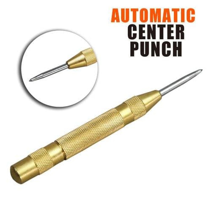 Pembuat Titik Tengah (Marking) sangat penting untuk memastikan lobang yang akan dibor tepat pada posisinya dan mata bor tidak lari kemana-mana menggores permukaan disekitarnya.Kini hadir Automatic Center Punch Hammer, peralatan wajib bagi agan yang hobby tukang dengan kelebihan:1. Bisa dioperasikan hanya dengan 1 tangan2. Tidak perlu paku3. Tidak perlu martil4. Tidak perlu ketok5. Double spring loaded barrel6. Push-to-strike actionCukup posisikan ujung jarum ke permukaan material, lalu sorong terus gagang pen nya hingga habis dan keluar suara PUKULAN CETAR MEMBAHANA DARRR...., sebuah lobang sempurna tepat pada permukaan material. Bisa untuk tembok, besi, aluminium, kayu dan plastik.**Cara Kerja:Menggunakan per yang menghasilkan tenaga tumbukan/pukulan yang keras. Tekanan per dapat diatur dengan memutar bagian atas gagang.**Referensi:https://enwikipediaorg/wiki/Automatic_center_...**Spesifikasi:Material gagang: KuninganMaterial ujung: HSS High Speed SteelHardness: up to HRC58~65Panjang: 130mmDiameter luar: 1