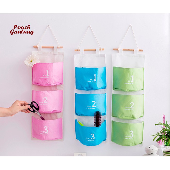 PENTING : BACA Syarat & Kondisi Sebelum Membeli !Mohon Dilihat Fotonya Baik2 Agar Saat BarangDiterima Tidak Terjadi KekecewaanPouch gantung terdiri dari 3 sekat. Berfungsi untuk tempat aksesoris, pernak pernik rumah dan dapur seperti kosmetik, alat rias, ikat rambut, remote, buku resep, pulpen, smartphone dan sejenisnya.Dilengkapi tali dan kayu, bisa digantung di tembok ruang tamu, kamar tidur atau di belakang pintu. Ada hiasan pita cantik di bagian atas pouch, unik loh...Dengan pouch gantung, pernak pernik kecil jadi tersimpan rapi dan mudah dicari saat dibutuhkan. Isi rumah juga jadi rapi, tidak berserakan dengan aneka pernak pernik.Kombinasi warna dan design menarik, cocok untuk menambah dekorasi rumah anda.Pouch Gantung (Dilengkapi tali dan kayu)Size : 20 X 58 CMREADY :-PINK-UNGU-HIJAU-BIRU**GAMBAR YANG DI TAMPILKAN SESUAI PRODUK YANG DIJUAL**=====================================================Catatan:*Semua barang yang kami jual adalah produk Import, bukan Lokal*Apa yang anda lihat pada gambar, itulah yang anda peroleh*Jika terdapat sedikit perbedaan pada warna hal ini disebabkan pengaturan yang berbeda pada layar monitor*Untuk Dropshiper harap cantumkan nama & hp pengirim pada kolom Dro