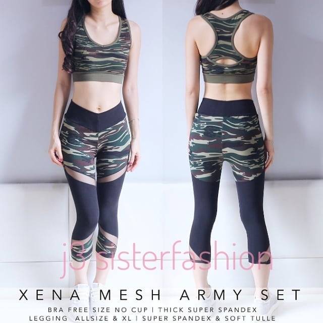Xena mesh army setAllsize 175,000 bra allsz celana uk 27-30Xl 190,000 bra allsz celana 30-32Bahan superspandex ,stretch keren
