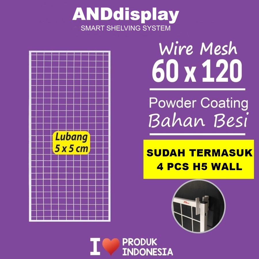 Name: Wiremesh 60x120cm + H5 Wall Putih Kawat Ram Dinding Wire Grid